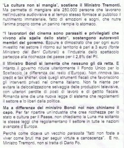 il volantino di protesta distribuito durante festa del film di Roma, 28/10/2010