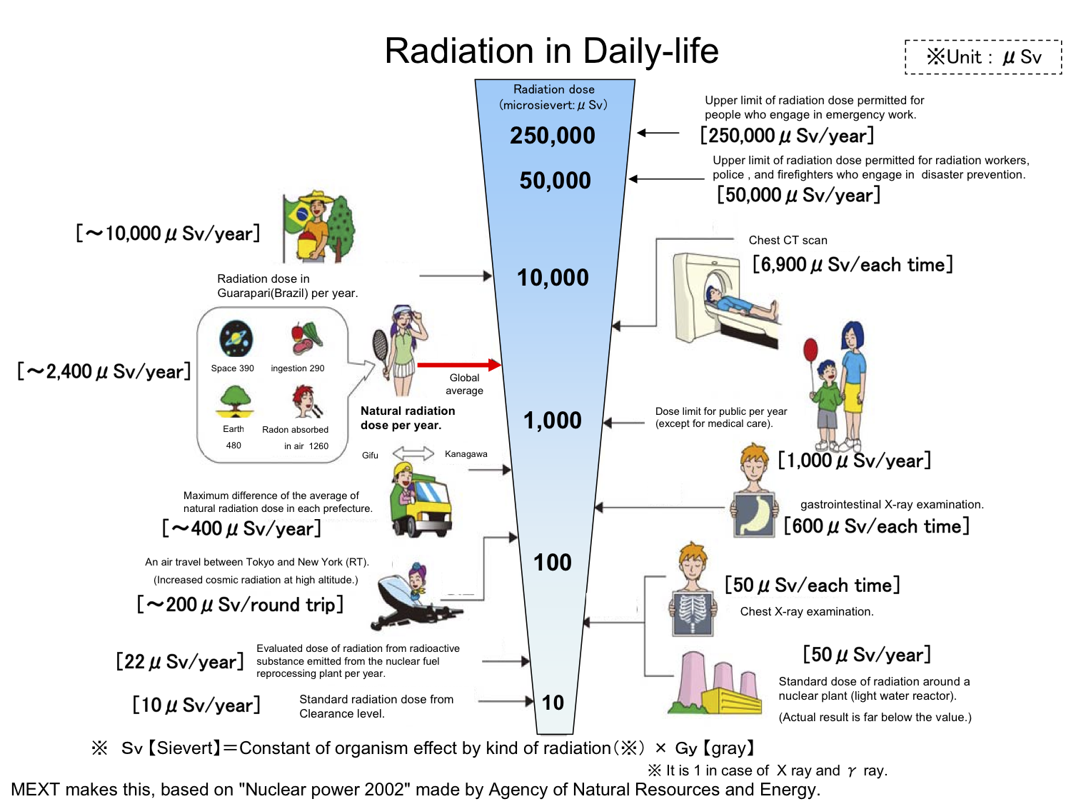 Ad esempio l’immagine qui a fianco mostra la dose di radiazioni alla quale mediamente simo sottoposti tutti e gli 8 mS del pompiere ad esempio sono ben al disotto i 250 mS che può ricevere un lavoratore addetto a questo tipo di interventi in un anno.